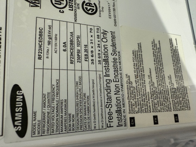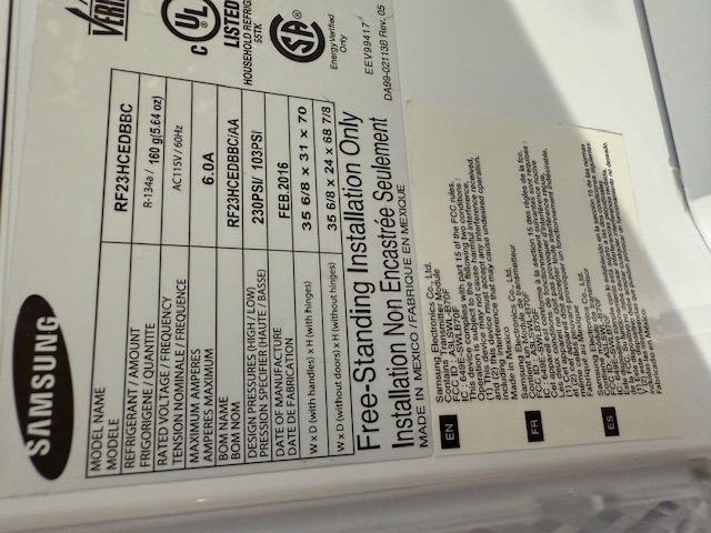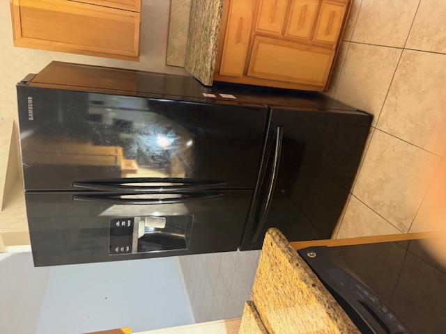 2016 black Samsung refrigerator Double door w/freezer on the bottom. Works great