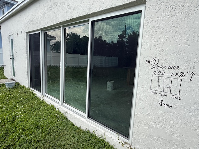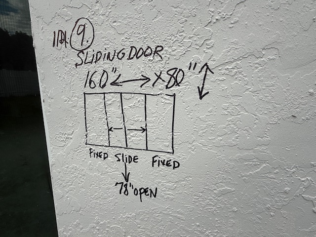 9.  160” w x 80” t  (78” wide opens) Sliding glass Door