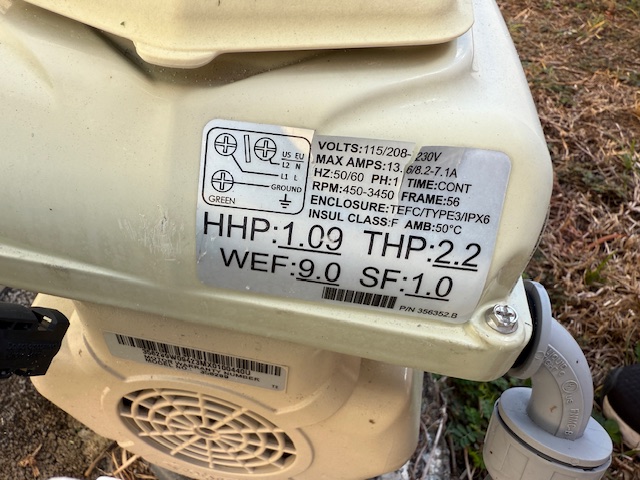 Pentair Variable speed Pool pump – Year 2023 Model 358289