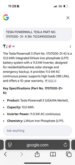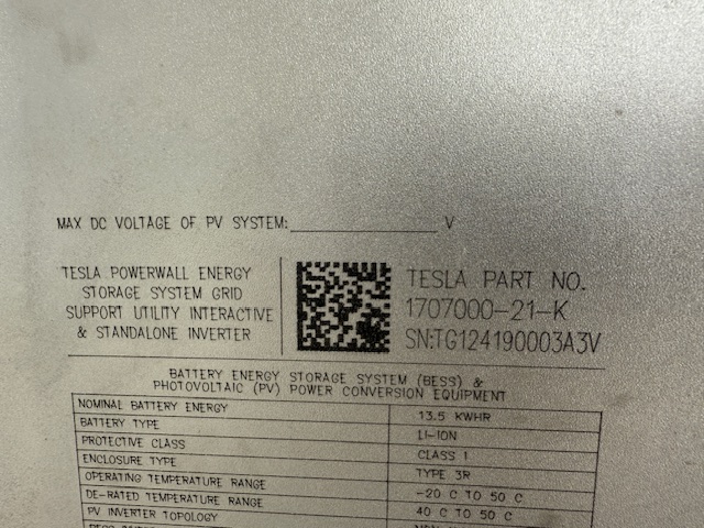 - The Tesla Powerwall 3 (Part No. 1707000-21-K) is a 13.5 kWh